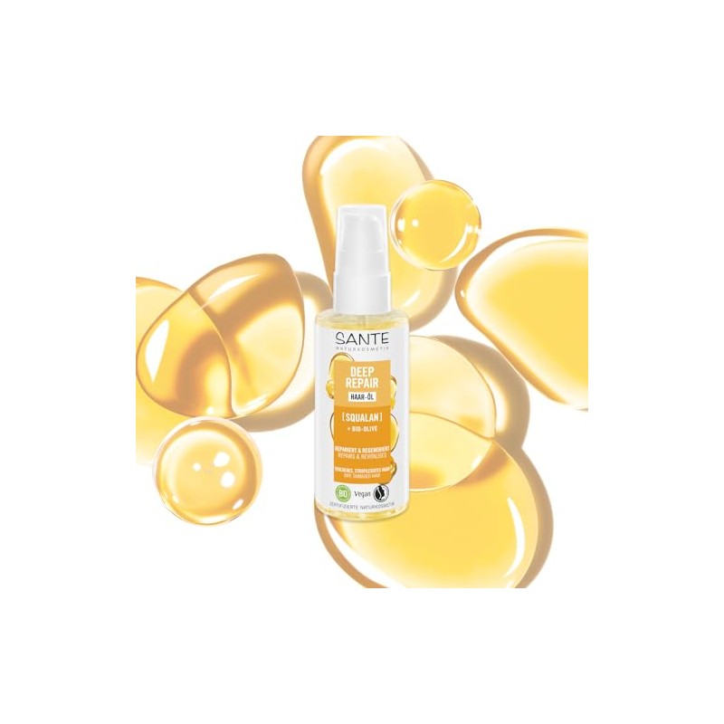 Sante Naturkosmetik SANTE Naturkosmetik Deep Repair Hair Oil Squalane + Organic Olive, vegan hair care oil for intensively nourished and silky-smooth hair, repairs and regenerates damaged hair, 75 ml