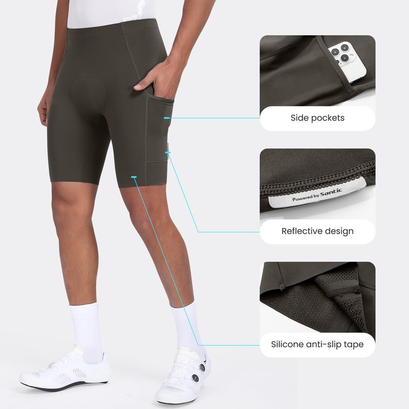 - Utility Pockets: Santic cycling shorts has side pockets can hold 5.5" mobile phone for great convenience. Reflective elements of the men cycling shorts for low-light visibility while riding.