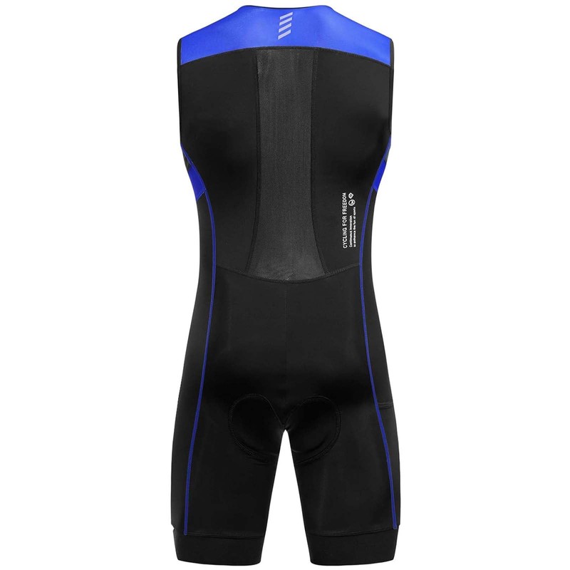 Santic Men's Triathlon Suit Padded One-Piece Sleeveless Pro Triathlon Suit Racing Trisuit Short Sleeve Cycling Suit for Cycling Swimming Running, blue, XL