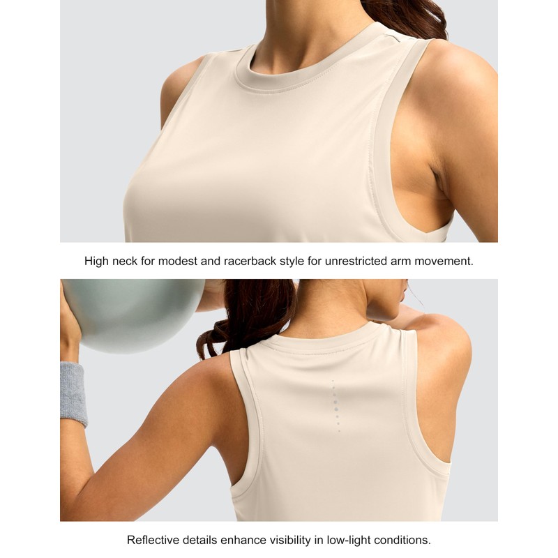 SANTINY Women's Sleeveless Workout Tops Lightweight Tennis Yoga Athletic Running Shirts Racerback Tank Tops for Women (Cream_L)