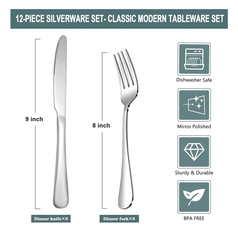 - 16 PCS Best Match : This silverware set comes with 8 Dinner Forks, 8 Dinner Knife, essential for families or restaurants.The set is also an irreplaceable dining tool whether it is for daily use or for preparing dinners or parties.