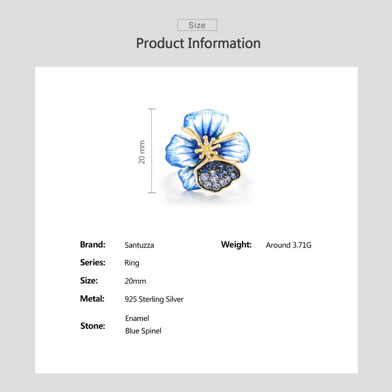 Santuzza 925 Sterling Silver Orchid Ring Blue Spinel Enamel Blue Flower Statement Ring for Women (8)