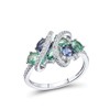Santuzza 925 Sterling Silver Oval Gemstone Wrap Cluster Ring Green Spinel Cubic Zirconia Rings for Women (7.5)