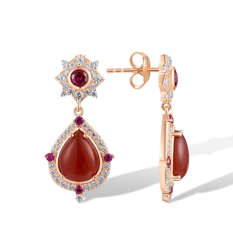 - ♥Affordable♥ The beautiful dyed red agate gold plated dangling stud earrings are inlaid with shimmering created ruby and decorated with shiny White Cubic Zirconia , so beautiful and eye-catching, but the price is very affordable