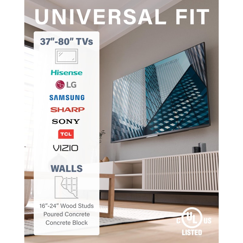 - Perfect Fit for Your Screen: Elevate your view with our versatile tilt TV mount designed for most screens 37 to 80" from your favorite brands like Samsung, Vizio, TCL, Insignia, LG and more. Whether you're binge watching your favorite series or streaming the latest blockbuster, this mount suits any VESA pattern from 100 x100 to 600 x 400.