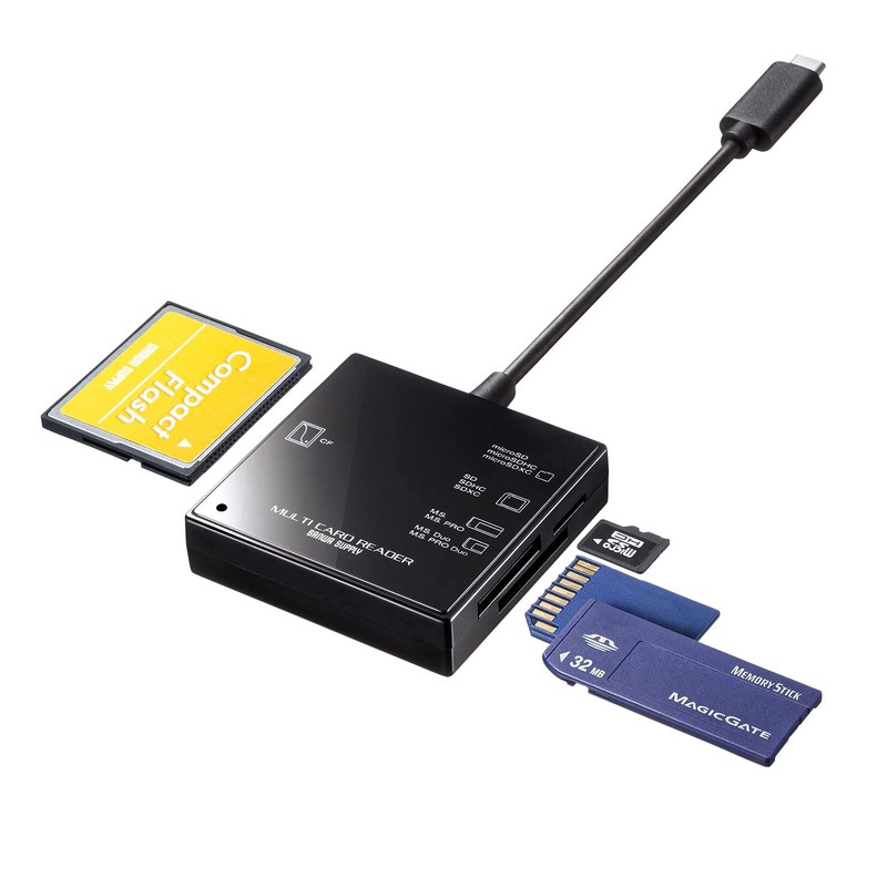 Sanwa Supply ADR-3TCML40BKN USB 3.1 Type-C Multi Card Reader