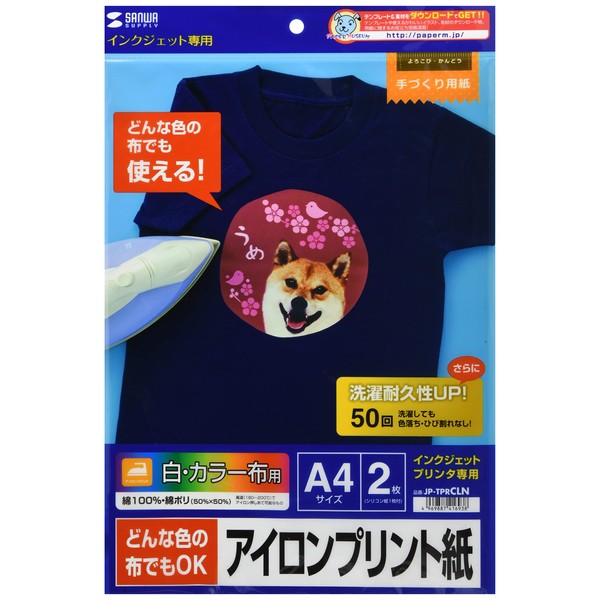SANWA SUPPLY JP-TPRCLN インクジェットカラー布用アイロンプリント紙 A4