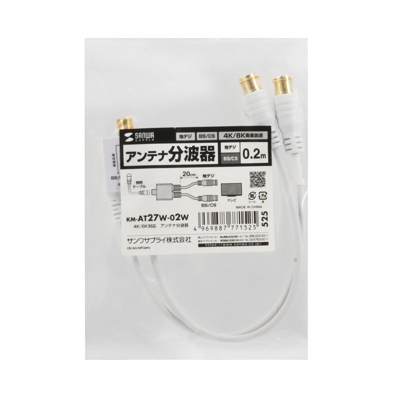 Sanwa Supply KM-AT27W-02W Antenna Divider Output Cable 0.2m