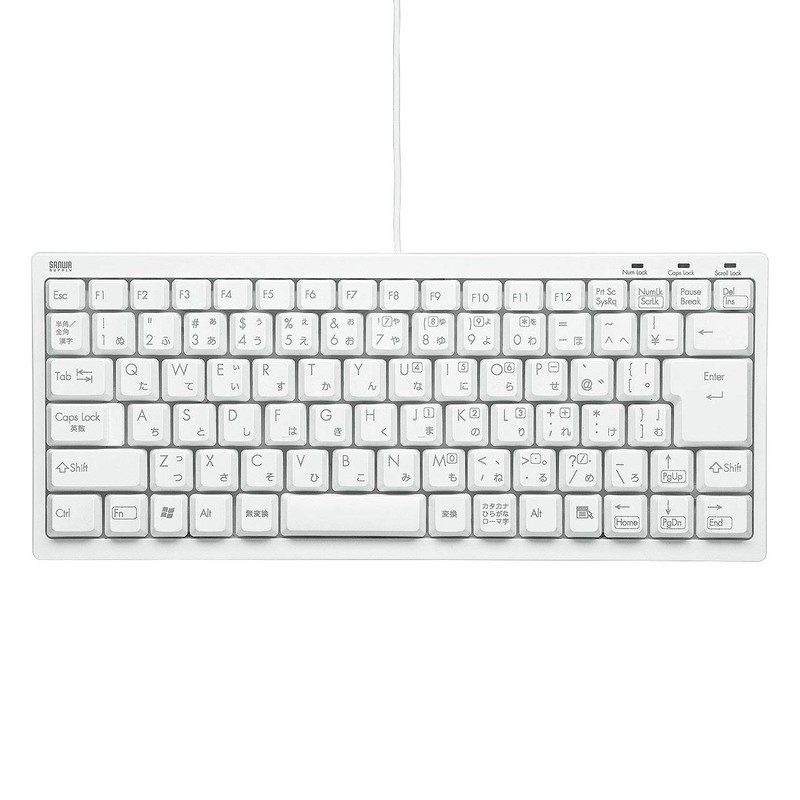 Sanwa Supply SKB-KG3WN2 Wired Compact Keyboard, No Numeric Keypad, USB Connection, Japanese 86 Keys, Membrane, USB-PS/2 Adapter Included, White