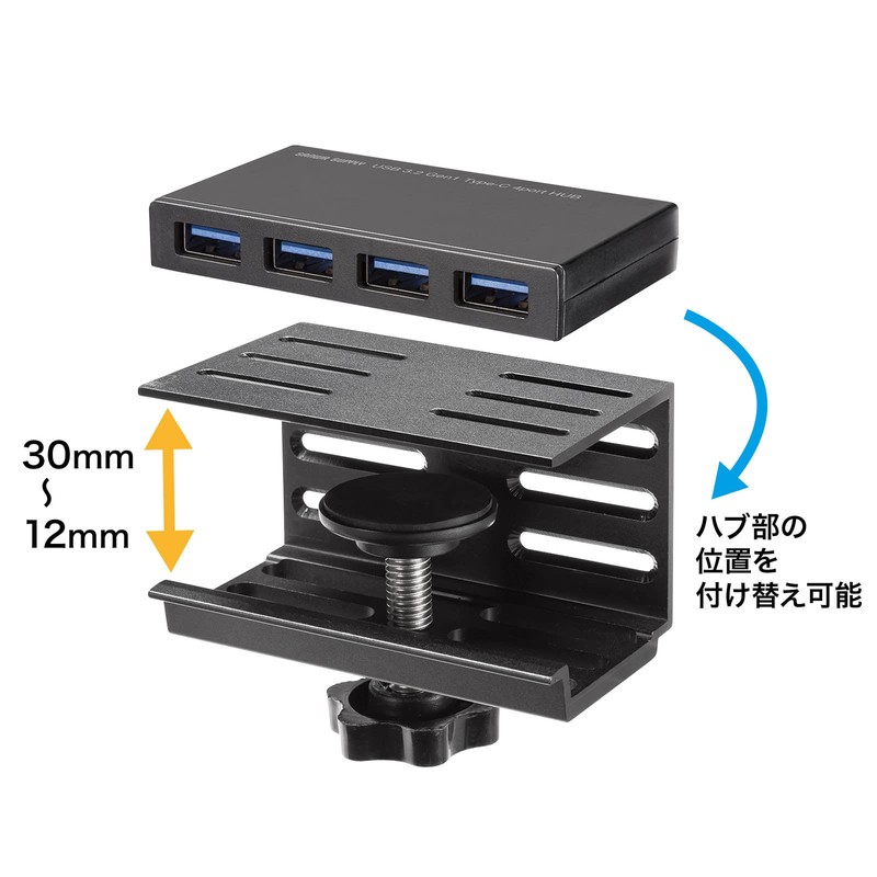 Sanwa Supply USB 3.2 Gen1 Type-C Hub Clamp Fixing Type USB 3TCH31BK Black