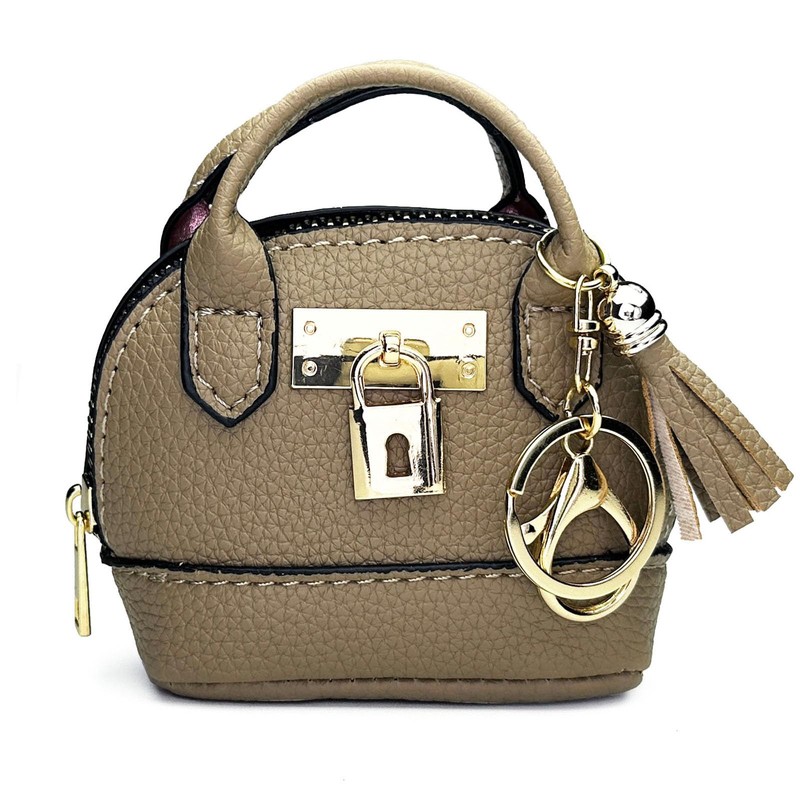 Sanxiner Keychain Coin Purse for Women,Cute Change Purse with Keyring Unique Purse Charms Small Coin Pouch Mini Purses Keychain Wallet with Tassels, Grey, Mini Handbag