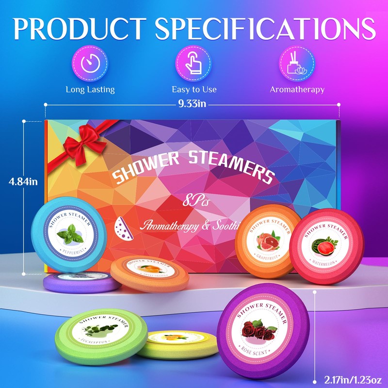 - Home Spa: Place the shower steamers in the corner of the shower and do not immerse it in water. These shower steamers offer a relaxing sensory experience, enjoy the benefits of an aromatherapy spa from home. The perfect way to start or end your day