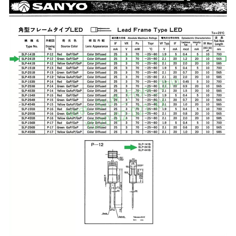 SANYO SANYO SLP-241B, RECTANGULAR, 100 GREEN LEDS IN SEALED BAG, NEW