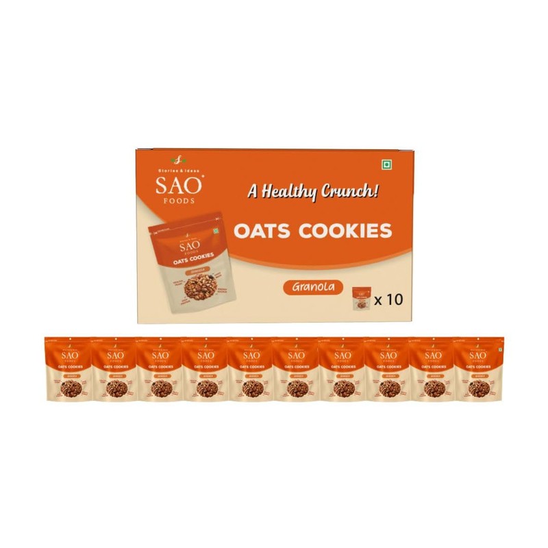 SAO Foods Oats Cookies Granola – 10.6 oz | Pack of 10 Small Packs | Healthy Oats Cookies