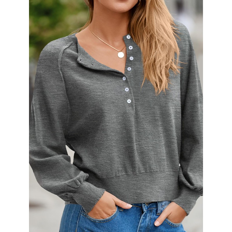 - Trend-Forward Design: Womens henley tops long sleeve, batwing sweaters for women, v neck sweaters for women, crew neck sweater for women, lantern sleeve sweater, knit sweater for women, loose sweaters for women. Featuring fashion forward raglan sleeves, a relaxed slouchy fit with exposed seam detailing, fashionable balloon sleeves for a contemporary silhouette. The stylish henley neckline with half button front offers adjustable coverage.