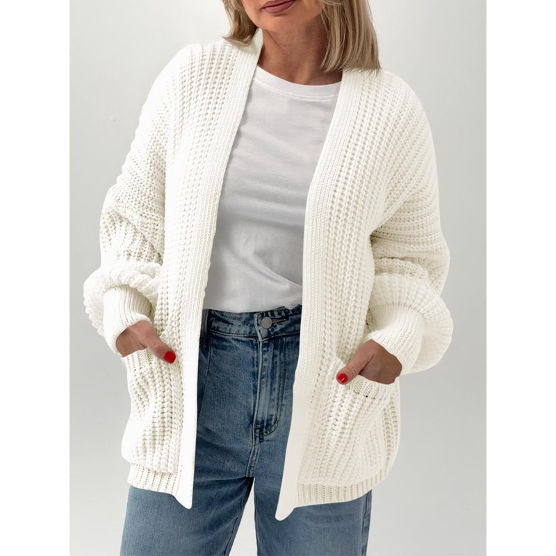 Saodimallsu Womens Oversized Cardigan Ribbed Chunky Knit Long Lantern Sleeve Open Front Fall Sweater Coats White