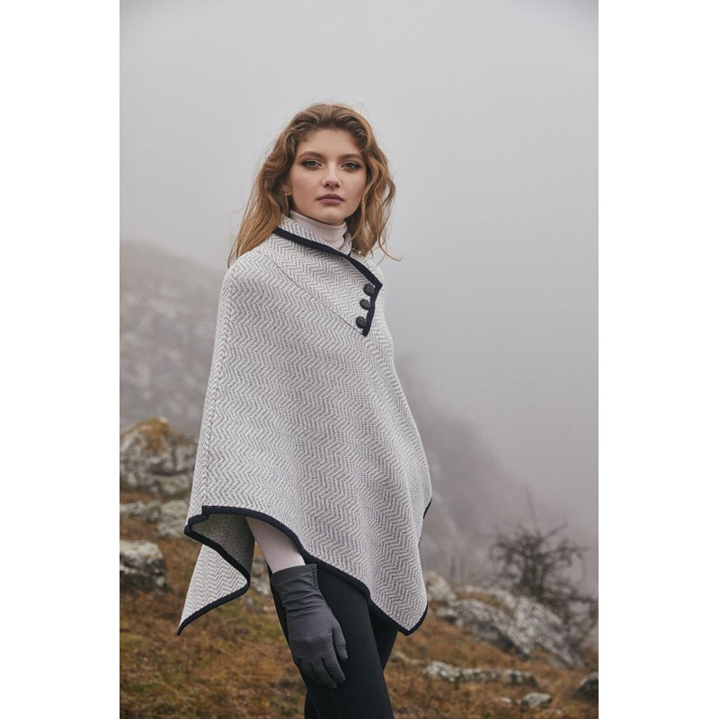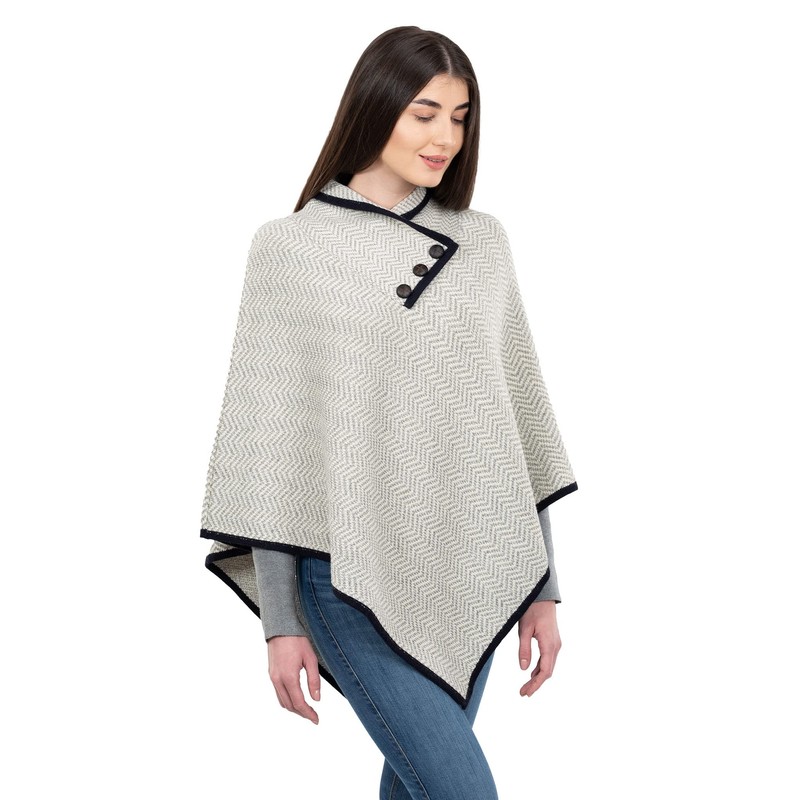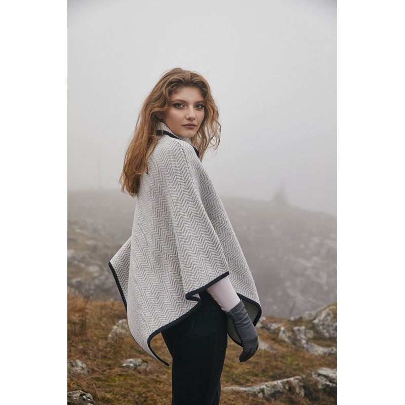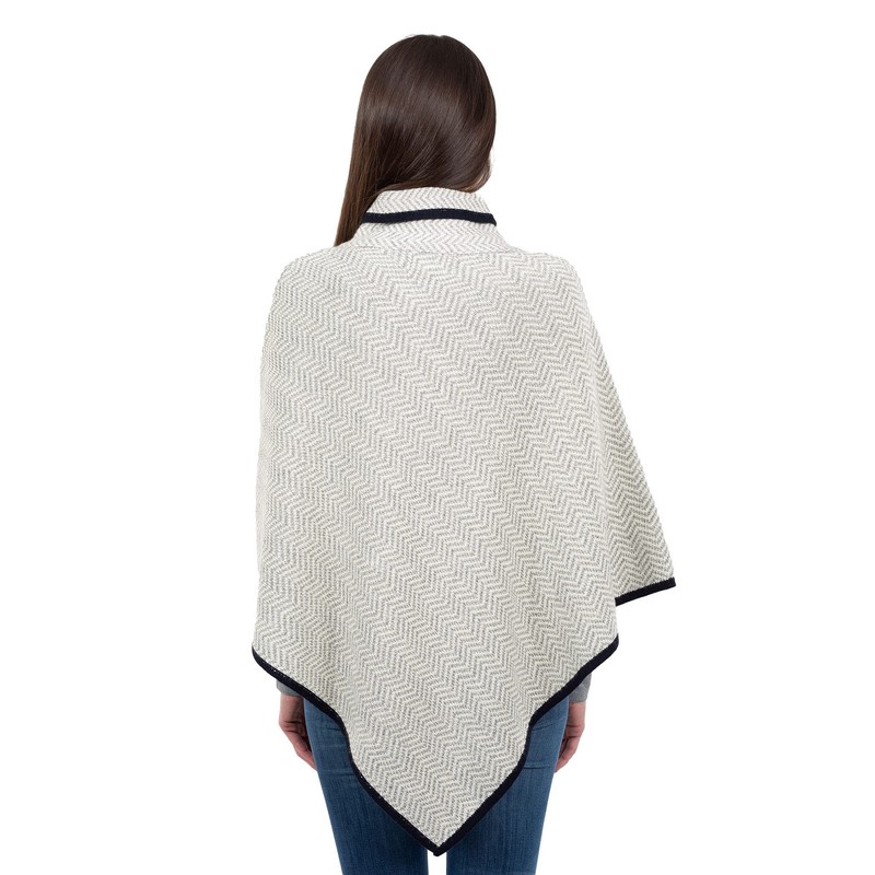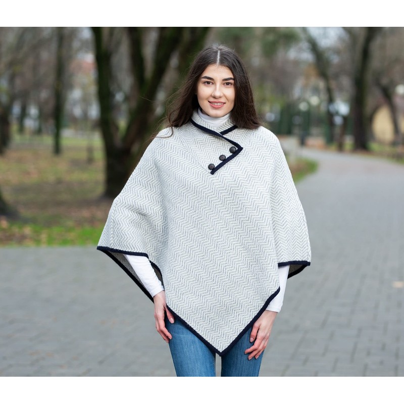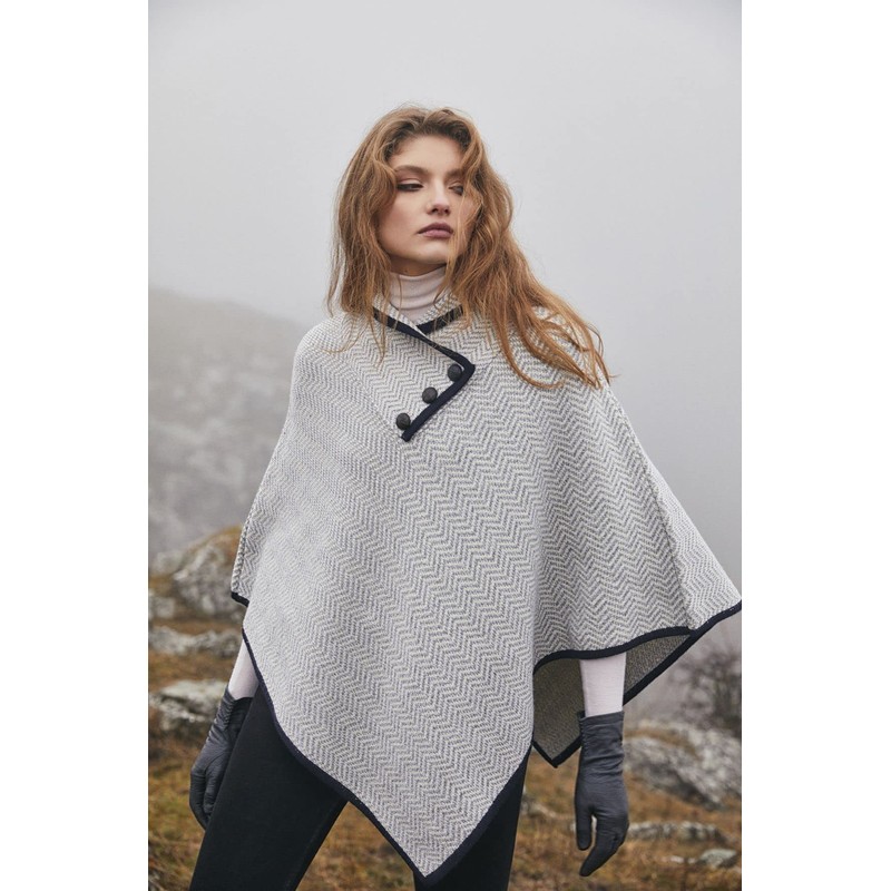 - Elegant Herringbone Pattern - Making this wool poncho effortlessly sharp and elegant is the refined herringbone pattern that dresses it up with mesmerizing, geometric movement. This pattern shows off two tones that create a subtle contrast that pleases the eye.