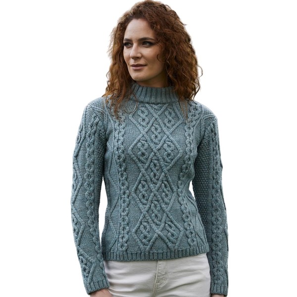 Disfruta de la sensación clásica de un suéter con un poco de estilo irlandés con este suéter cable. Se utiliza 100% lana merino fina para fabricar esta delicada pieza, dándole una gran capacidad aislante, capacidad de absorción de humedad y suavidad premium. Este suéter cuenta con costuras Aran que muestra intrincadas variaciones de puntadas de cable que simbolizan las esperanzas de éxito. Complementando las costuras del cable están ribeteadas en el cuello, puños y dobladillo de cuello alto. Lleno de textura fascinante y gracia, este suéter será una adición elegante al clóset de cualquier mujer