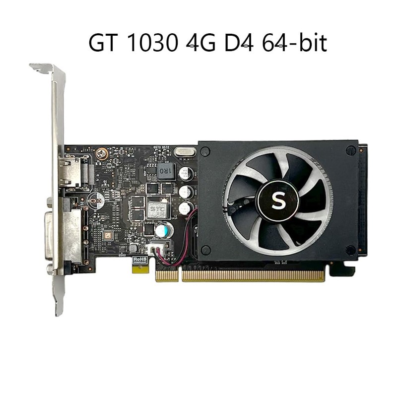 SAPLOS GT 1030 Graphics Card, 4GB GDDR4 64-bit, HDMI DVI, Low Profile, PC Video Card Gaming, Computer GPU, 4K Support, DirectX 12, 2 Displays Support