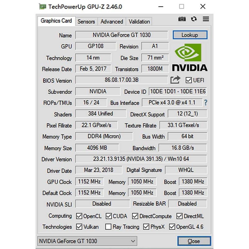 - Compatibility GT1030 includes 4GB GDDR4 memory, and features 384 CUDA cores, clock speed of incredible 4200MHz. It supports the Windows operating system