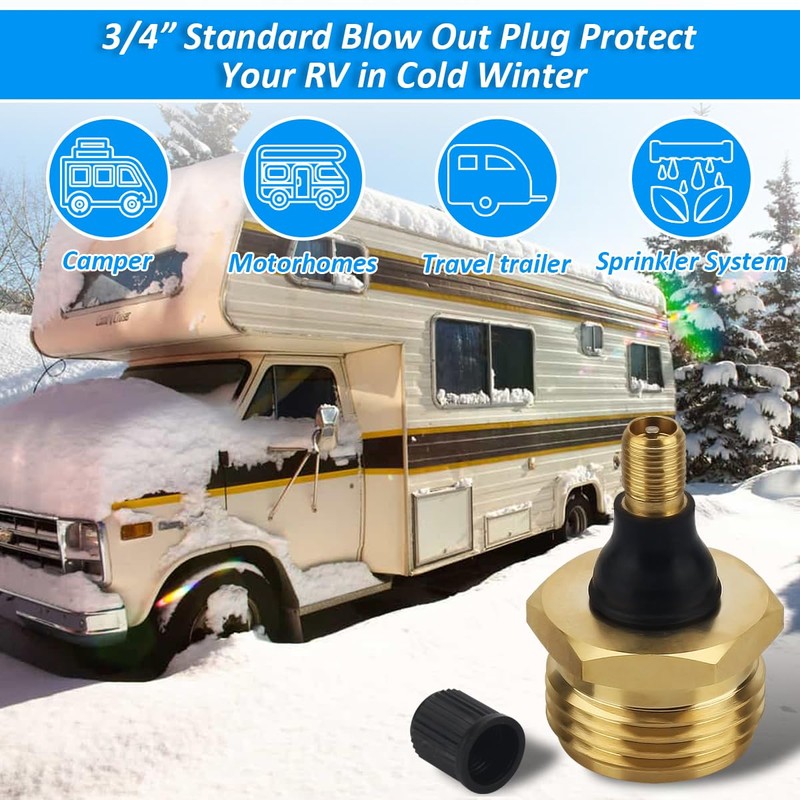 This RV essential accessory for winter - Brass Blow Out Plug- simple and practical, has a significant effect on preventing water pipes from bursting at low temperatures. Easily helps your RV get through the long winter.