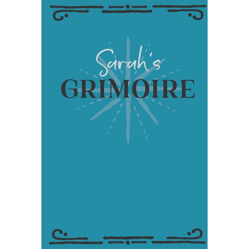 Sarah‘s Grimoire: Personalized Grimoire Notebook (6 x 9 inch) with 162 pages inside, half journal pages and half spell pages.