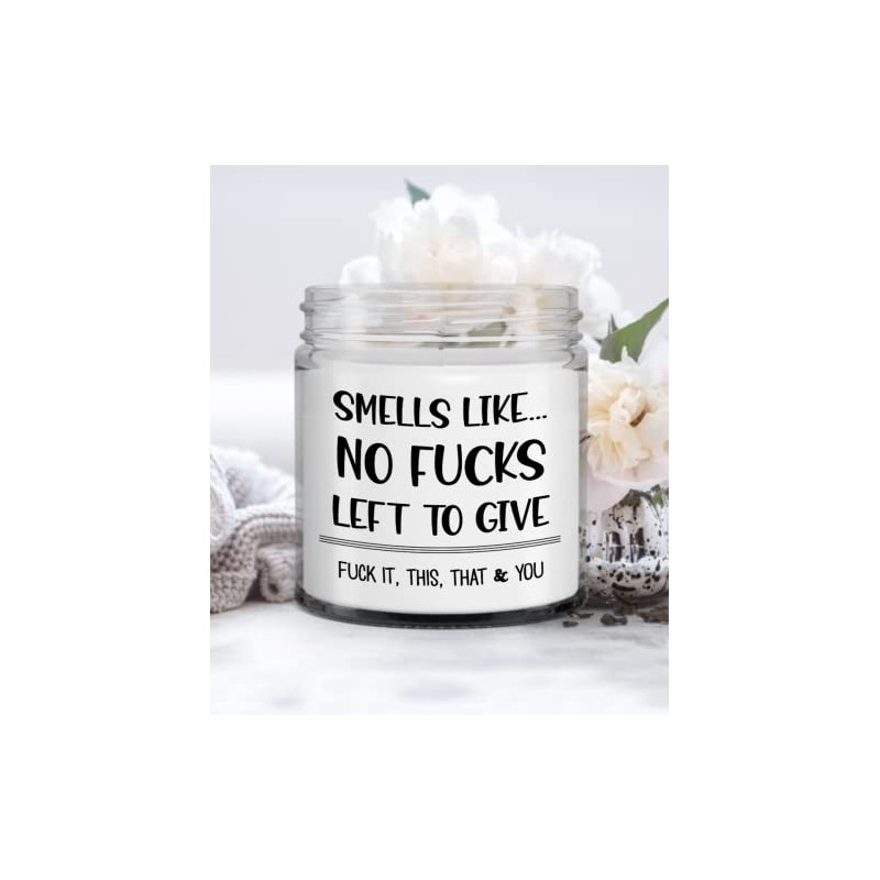 Sarcastic Candle Smells Like No Fucks Left to Give Funny Sayings Gag Jokes for Friends Coworker Offensive Rude 9 Oz. Vanilla Scented Soy Wax with Lid