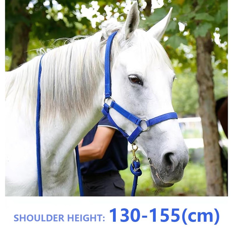 Sarini Premium Blue Lead Rope with Sturdy Panic Hook and Knitted Halter for Horses - Ideal for Ponies, Thoroughbreds and All Riding Enthusiasts