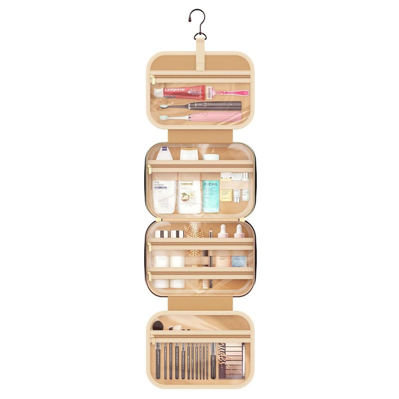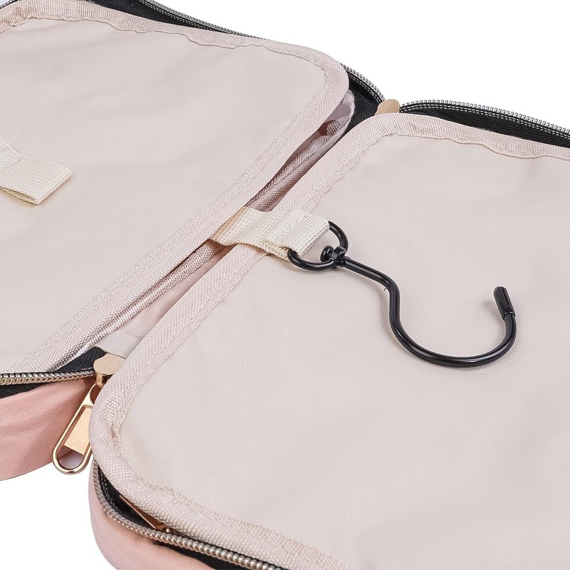 - Convenient Hanging Hook Equipped with a sturdy hook, this toiletry bag can be hung on bathroom doors, towel rails or any other hook, allowing you to easily access your belongings and save space on the shelf.