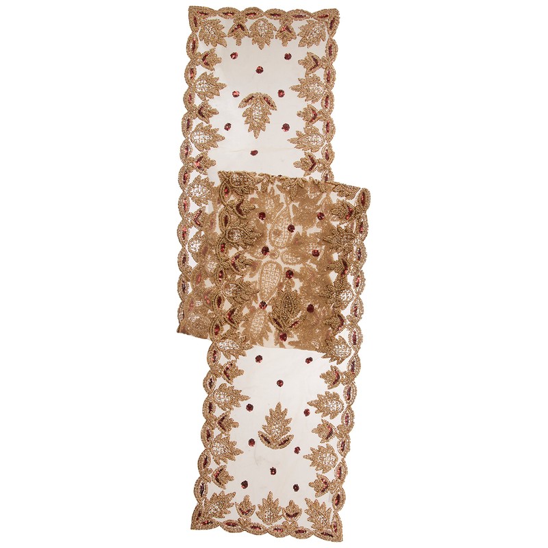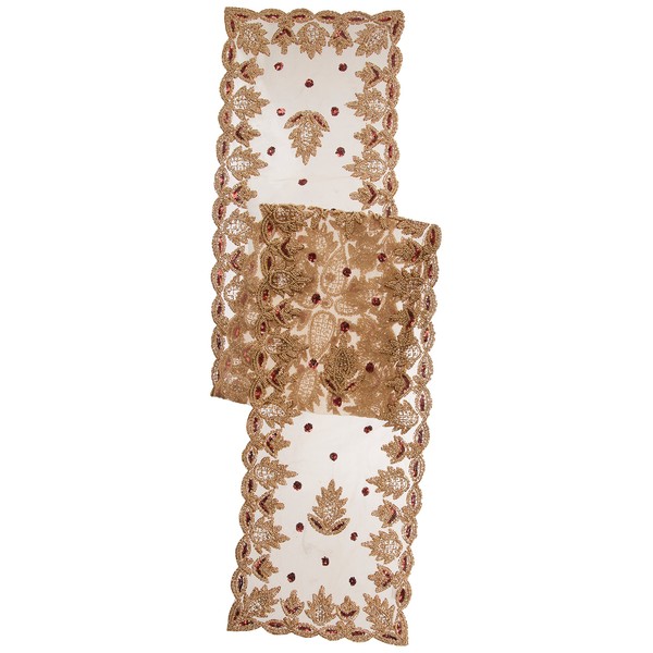 SARO LIFESTYLE Burgundy Hand Beaded Design Table Runner, 16" x 72"