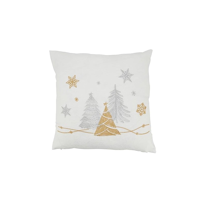 SARO LIFESTYLE Festive Flurries Christmas Trees and Snowflakes Poly Filled Throw Pillow, White, 18"