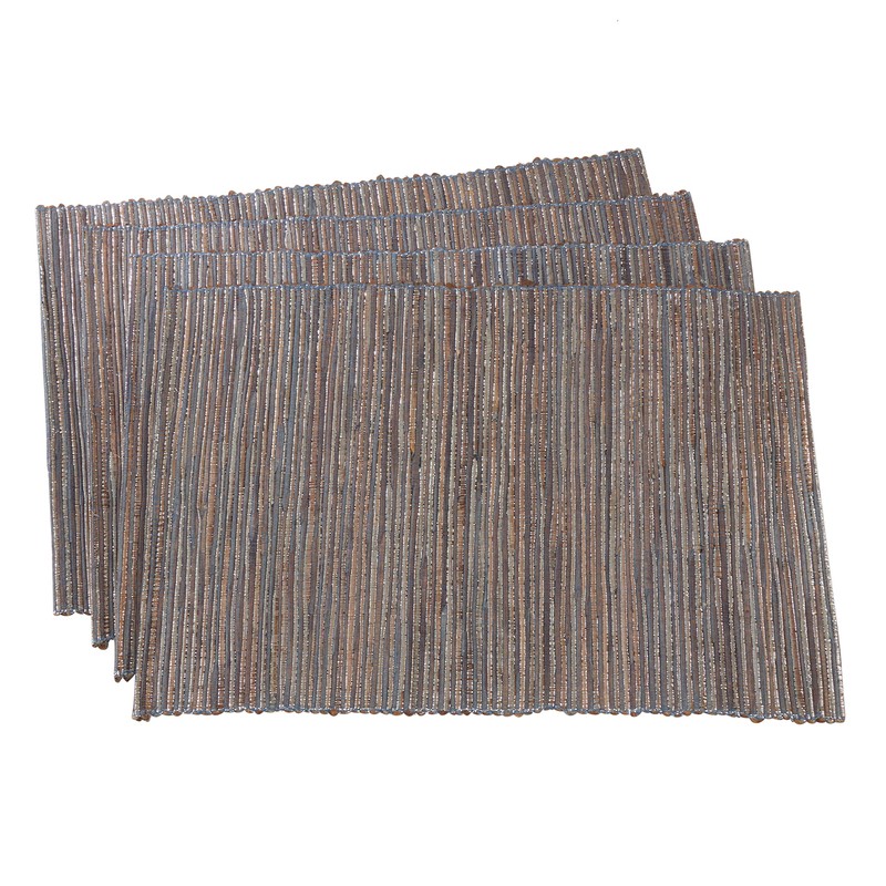 SARO LIFESTYLE Melaya Collection Shimmering Woven Nubby Table Placemats (Set of 4), 14" x 20", Blue-Grey
