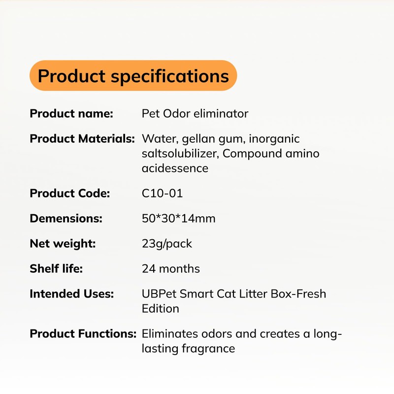 • Specified: SAROSORA deodoriser has been specially designed for Pura Max self-cleaning cat litter box and SAROSORA UBPET automatic cat litter box (does not fit the SAROSORA C10 base version). One pack contains 6 pieces of deodoriser, 1 piece can be used for 30 days.