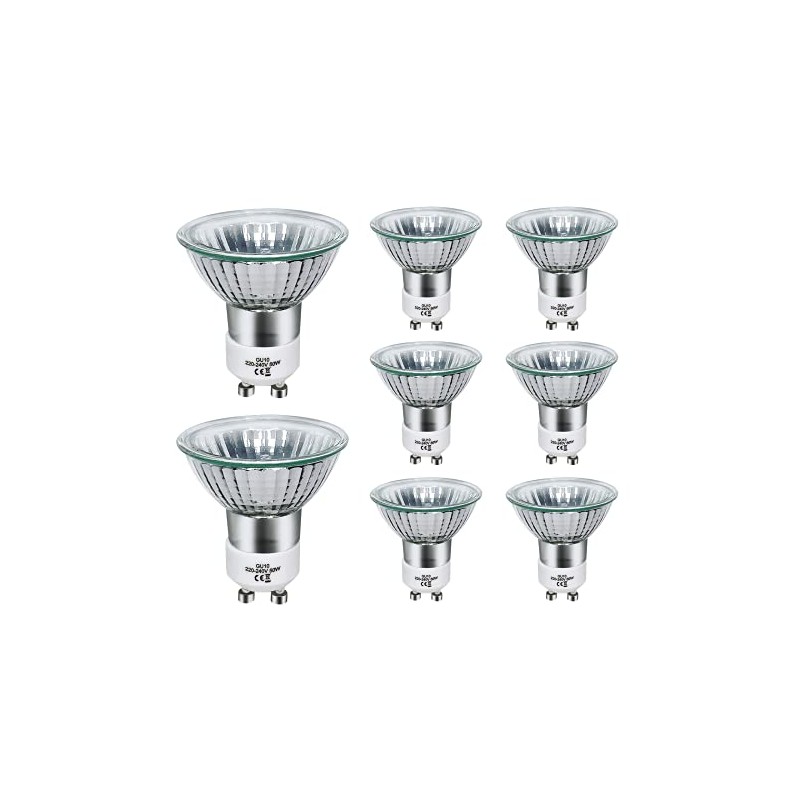 Sarveeta Sarveeta GU10 Halogen Bulbs 50W Dimmable, 220V GU10 Halogen Spotlight Bulbs 2 Pin2800K Warm Withe,700 Lumens42 Beam Angle Pack of 8