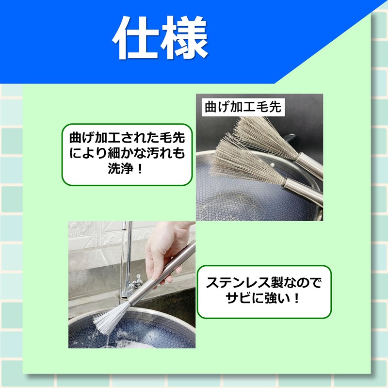 - (Easy to remove stubborn stains) The stainless steel texture effectively removes burnt and oil stains. The fine bristles reach every corner of the pan, and can remove dirt without using detergents, making it environmentally friendly