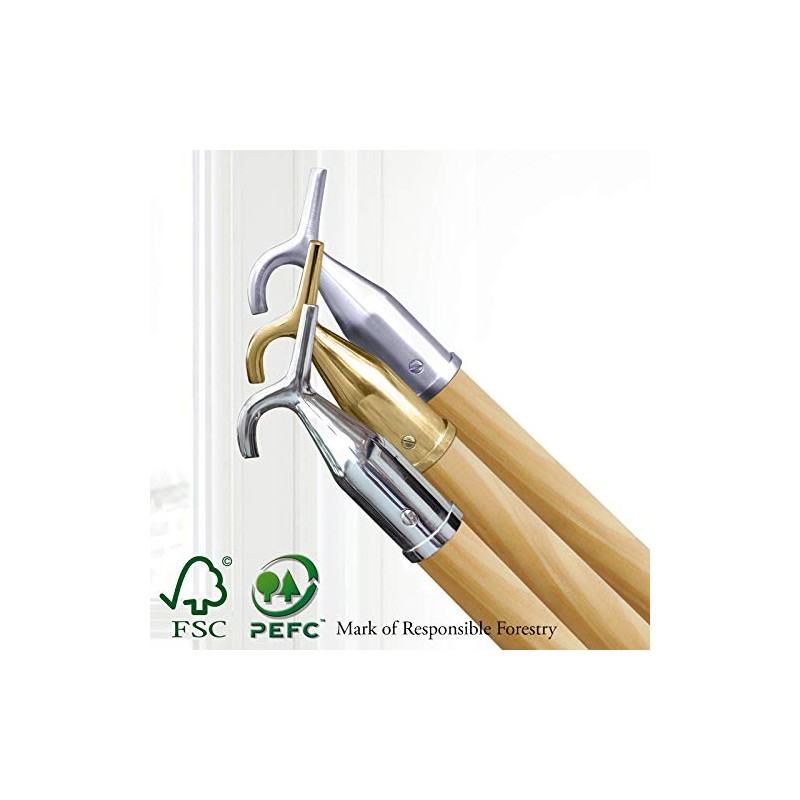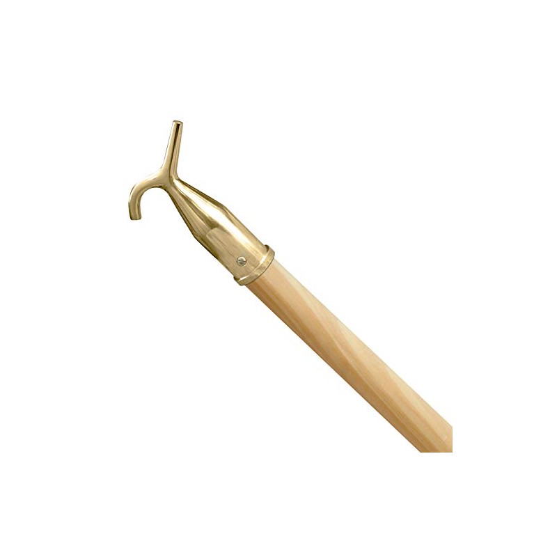 Sash Window Pole With Hook - Compatible with VELUX Roof Windows, Loft Hatches Or Attic, Blinds, Boat Hook (Polished Brass)