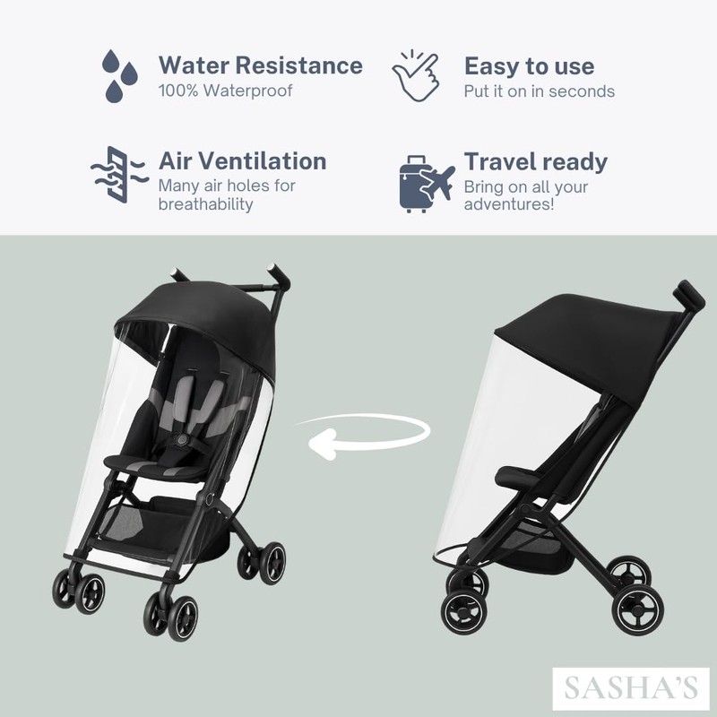 Rain Cover for gb Pockit+ All-Terrain, Pockit+ All-City, and Pockit Air Strollers by SASHA'S [Weather Shield, Custom Fit, Made in USA]