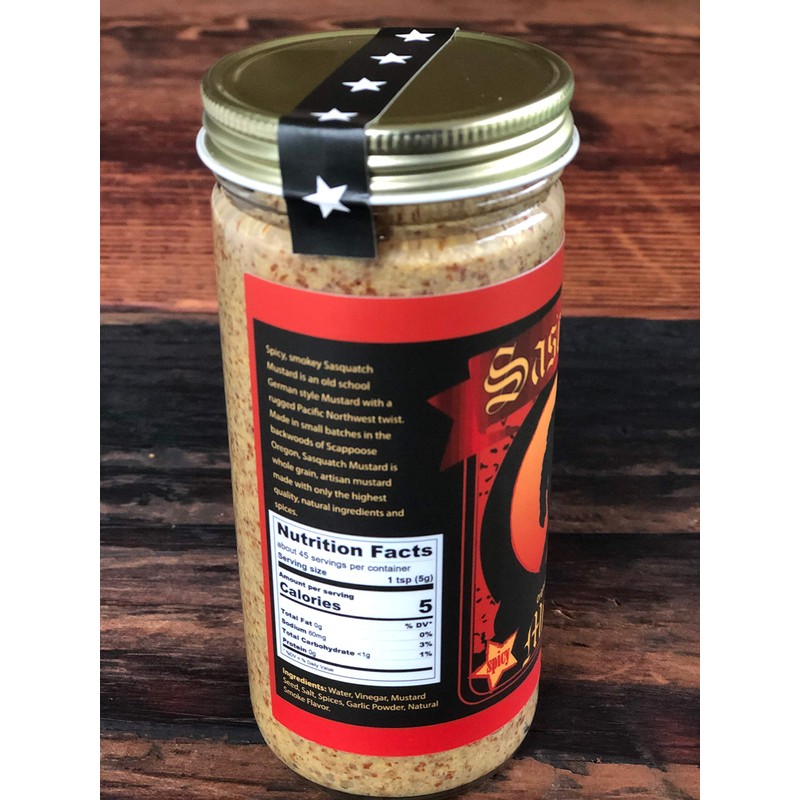 - Sasquatch Mustard is an old school German style Mustard with a rugged Pacific Northwest twist. Made in small batches in the backwoods of Scappoose Oregon, Sasquatch Mustard is artisan mustard made with only the highest quality natural ingredients and spices.