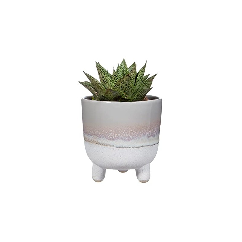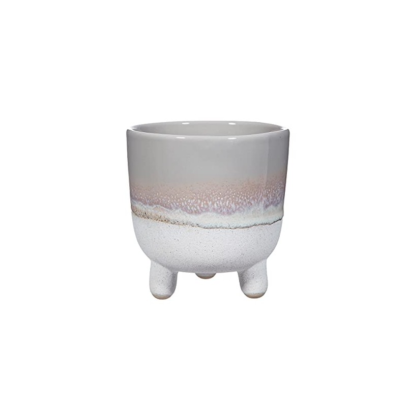 Add a touch of bohemian spirit to your indoor garden with this large tonal grey planter, standing on three textured legs. The rustic texture and dip ombre effect is created from a reactive glaze technique which forms subtle variations in colour tones, making each one beautifully unique. Completed with a gloss finish.