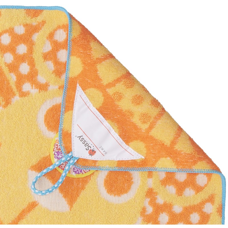 - Note: Sassy is a toy brand that has been born in America over 20 years ago. A towel with a loop that is great for kindergartens and nurseries. Jacquard woven and soft. Comes with a name tag.