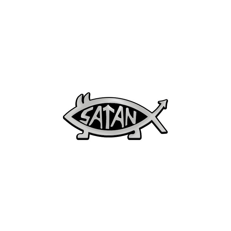 Satan Fish Plastic Auto Emblem - [Silver][5'' x 2 1/4'']