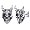 - 【Satan Skull Earrings】Vintage silver satanic goat skull stud earrings, nice materials and great details, looks pretty cool and stylish, such a fashion piece jewellery could help you captures the attentions among the crowd.