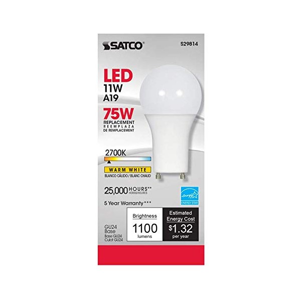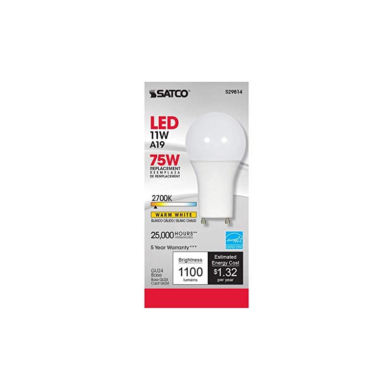Satco S29814 11A19/LED/2700K/120V/D/GU24 24-Pack