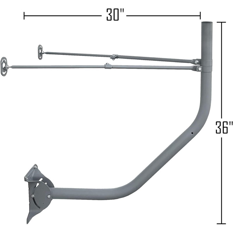 • Extends 30 inches away from the vertical wall to clear most eaves