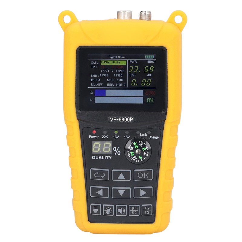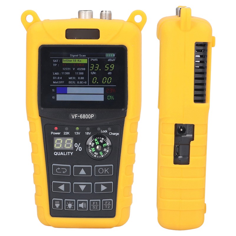 1、HD LCD SCREEN: Digital satellite signal finder features a 2.4 inch TFT colour LCD screen, supporting better resolution. 2、EXTENSIVE COMPATIBILITY: Satellite finder fully supports DVB S, DVB S2, DVB T, DVB T2, DVB C, MPEG2, MPEG4 compatible. 3、SUPPORTED DEVICES: Satellite finder supports spectrum analyser, motor set and antenna motor control, DisEqC 1.2, USALS, OFF. 4、SUPPORTED PROTOCOLS: Digital satellite signal finder supports DISEQC 1.0, DISEQC 1.1, DISEQC 1.2 and 22khz tones. 5、MULTIPLE TEST FUNCTIONS: Portable satellite finder can be used to test signal strength, quality, BER, PWR, SNR, MER and more. 6、MULTIFUNCTIONAL: Portable satellite finder supports a cyclic search function and a wide range of OSD languages. Support for LNB short circuit protection and indicators. 7、LONG BATTERY LIFE: Satellite signal meter with built in 2500mAh fast charging Li‑ion battery for long standby time and low power consumption.