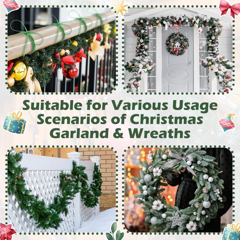 - Camouflage with Classic Green: the garland ties blend into any greenery, thanks to their classic Christmas green color; They become virtually invisible among wreaths, pine branches, vines, and lights, maintaining the aesthetic beauty of your decorations; Your holiday setup will look more professional and tidy, effortlessly