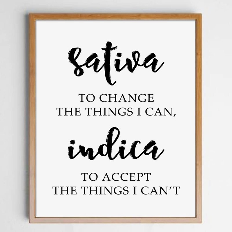 Sativa To Change The Things I Can, Indica To Accept The Things I Can't, Wall Art, Home Decor, Stoner Gifts For Her, Stoner Room Decor UNFRAMED (8x10 INCH)