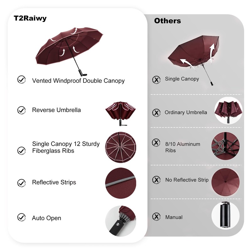 - NO WET DRIPPING & EASY ENTRY/EXIT: Unique Reverse Folding Design traps rainwater INSIDE when closing. Stay dry while getting in/out of cars or buildings. No wet floors or seats! Perfect for UK downpours.