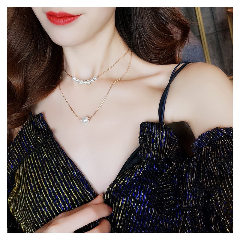 - Double pearl clavicle chain, chain uses electroplating technology, more shiny than common necklace, double chain, first chain length 40CM is 8MM pearls, second chain length 30CM has 4MM pearls. The double pearl necklace looks more classy