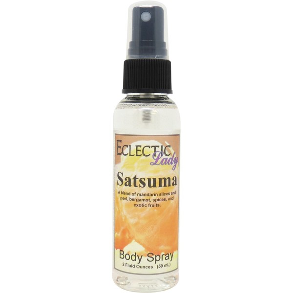 Our Satsuma fragrance is a magical blend of mandarin slices and peel, bergamot, spices and exotic fruits. This fragrance is phthalate free. Our body spray adds a little bit of moisture to your skin along with a light fragrance. Our Double Strength formula contains double the fragrance of our original body sprays for people who like a stronger body spray. All of our products are made to order. To avoid leakage in transit, Eclectic Lady tapes all caps on our sprays and places each bottle into it's very own reclosable bag.